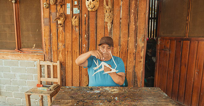 He began carving wood at the age of 14. His first pieces were armadillos, and among the figures, Christopher Columbus and his ship stand out.