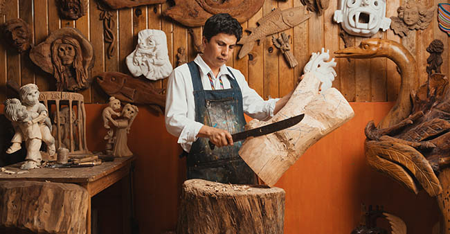 Efraín is part of the third generation of wood carvers. He began carving at the age of 7 under the supervision of his father Epifanio Fuentes, who learned from his father.